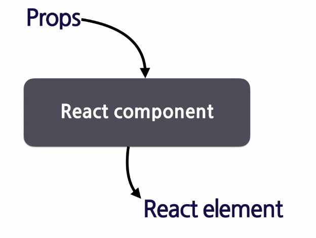 이 그림을 보면, 리액트 컴포넌트에서의 입력은 Props 이고 출력은 React element 가 된다.