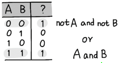 57. 두 개의 참(1) 또는 거짓(0)이 입력될 때, 참/거짓이 서로 같을 때에만 참이 계산되는 프로그램을 작성해보자.