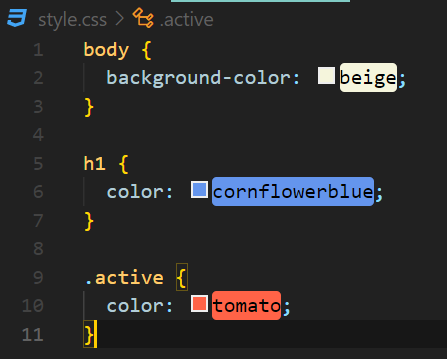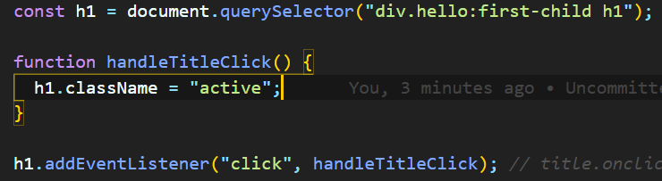 js 파일에서 h1 태그에 active라는 클래스를 추가하면, css 파일에 의해 클릭했을 때 글자의 색이 tomato색으로 바뀌는 것을 확인할 수 있다.