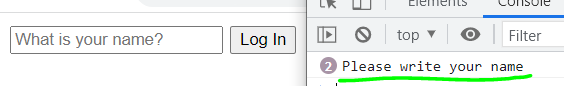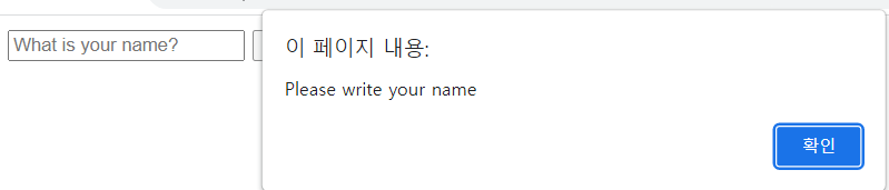 이제 새로고침 후 이름을 입력하지 않고 login 버튼을 누르면, JS로 코드를 작성하지 않아도 html이 우리를 도와주는 것을 확인할 수 있다.