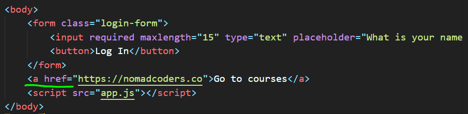 이제는 form에서 살짝 벗어나서, 특정 사이트로 이동하는 a 태그를 작성해 보았다.
